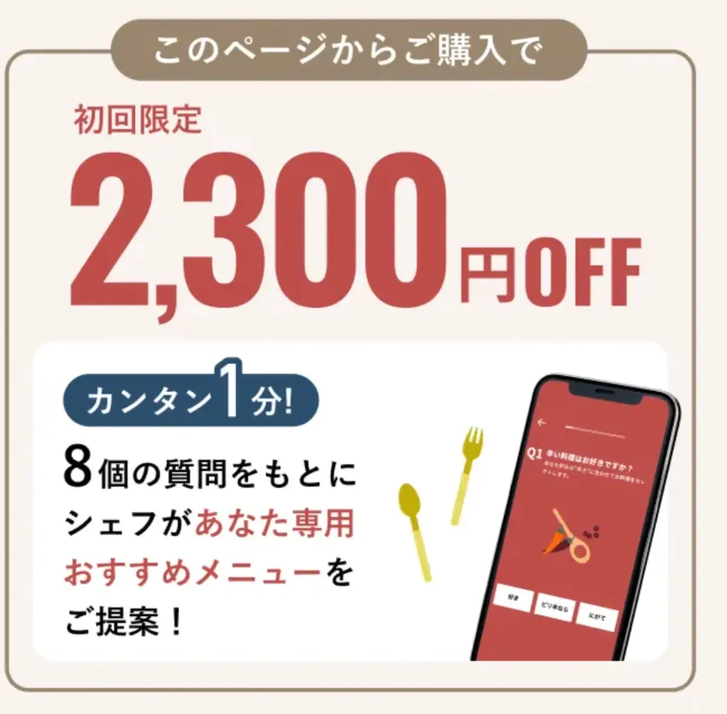 公式サイトより8個の質問をもとにシェフがあなた専用おすすめメニューを提案してくれます!