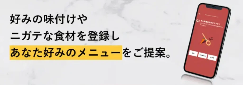 また、独自の「味の好み診断」も大きな特徴です。約1分間の簡単な質問に答えるだけで、システムがあなたの好みを分析し、最適なメニューを自動でセレクトしてくれます。
