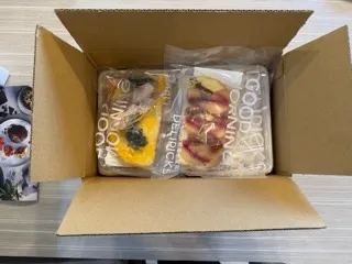 今回は公式サイトから人気メニューを中心に宅配弁当を注文。クール便で指定日時に届いた段ボール箱を開封すると、ケースに冷凍弁当がきっちりと収まっていました。