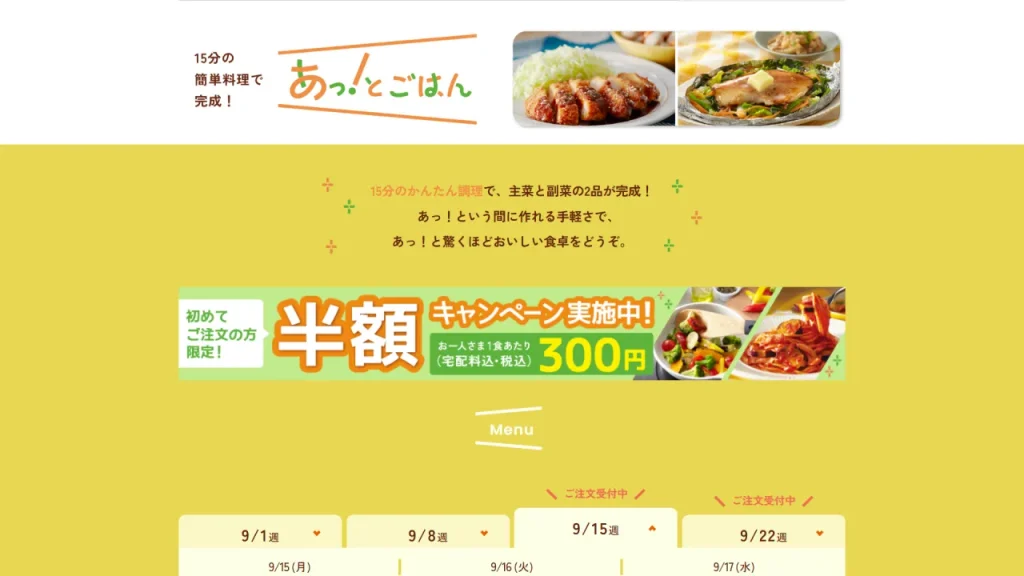 カット済み食材を鍋やフライパンに入れるだけで完成するうえ、包丁を握る工程は平均90秒と公式サイトに記載。共働き世帯に刺さる設計です。