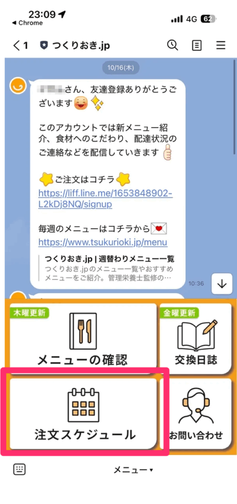- 公式LINEの「注文スケジュール」をタップ