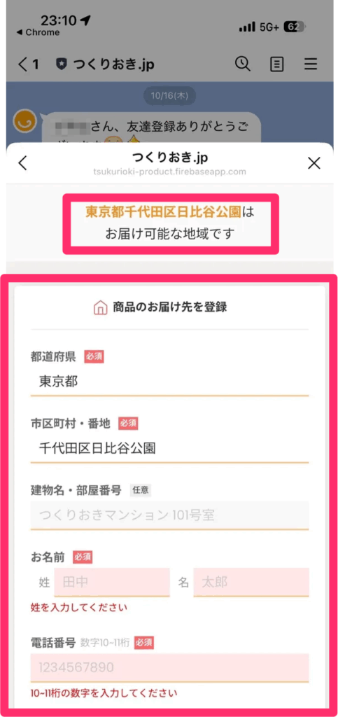 自分の家・地域がつくりおき.jpの配達エリアか確認する方法